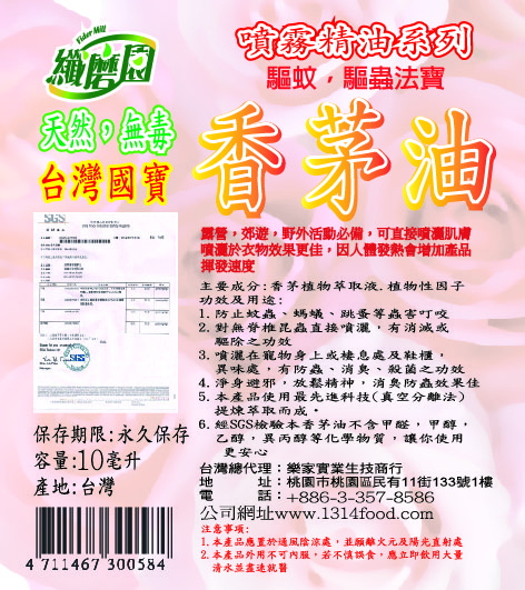 成分:台灣香茅油,植物性精油